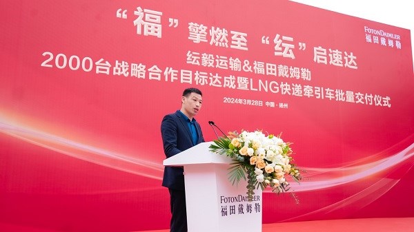 纭毅运输致力于为快递行业提供卓越的物流整体解决方案,并在运营中长期与欧曼紧密合作,在行业内树立起了强强联合、互利互信的共赢典范。福田戴姆勒营销公司副总经理张景尧在致辞中表示:“作为国内知名的商用车品牌,欧曼将始终以用户需求为导向,继续秉承‘用户至上’的服务理念,不断提升产品性能和服务水平,为客户创造更大的价值。同时,我们也期待与各位合作伙伴携手共进,共同推动商用车行业的繁荣与发展。”基于对欧曼品质和服务的高度认可,纭毅运输再次增购220台欧曼GTL530马力LNG牵引车,到目前为止,纭毅运输与欧曼已达成了2000台战略合作目标,标志着双方进一步开启全面合作新征程。